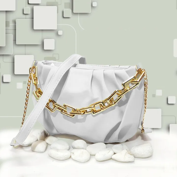 This stylish ruched shoulder bag is the perfect blend of modern design and timeless elegance. Crafted with a soft, textured finish, it features a bold gold chain accent that adds a statement-making touch to its overall look. The bag is both lightweight and spacious, offering ample room for your daily essentials while maintaining a sleek, compact silhouette. Whether you’re heading out for a casual outing or a formal event, this versatile bag elevates any outfit with its chic and sophisticated appeal. Perfect for those who value both fashion and functionality, it’s a must-have accessory for any wardrobe.