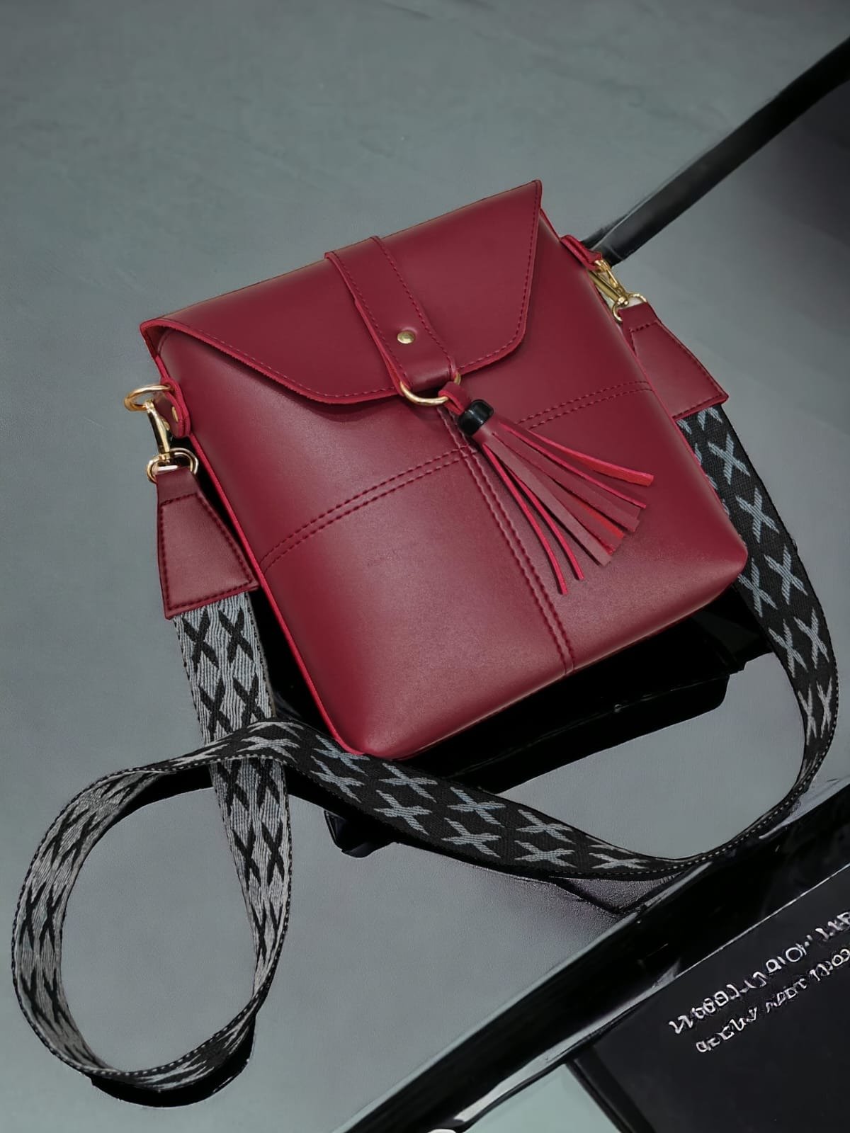 Elevate your style with this chic crossbody bag, designed for both fashion and functionality. Featuring a sleek envelope-style flap with a trendy tassel accent, this bag is perfect for adding a touch of elegance to any outfit. The adjustable patterned strap not only provides comfort but also adds a unique, modern flair. Compact yet spacious, it offers enough room for your essentials, making it ideal for daily errands, casual outings, or evening events. Crafted with high-quality materials and meticulous stitching, this bag is as durable as it is stylish. A must-have accessory for the modern fashionista!